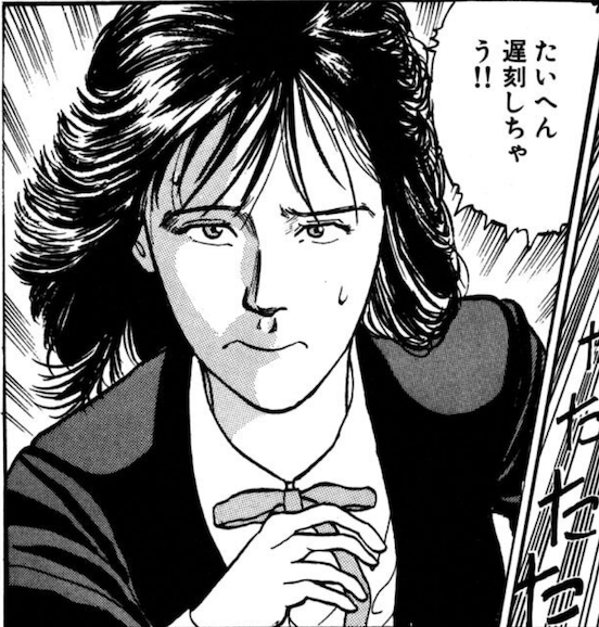 遅刻しそうになって道路へ飛び出し、バイクに轢かれそうになったところをゴリラーマンに助けられる。